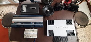 materiale car audio hertz hdp4 euro 200 ...hertz sub es f 20.5 euro 50....audison srx 2 euro 120....audison prima ap 6,5 nuovi euro 70....ciare woofer hw 175 240 watt da 8 hom portati a diametro a 165 fatti al tornio euro 100 ....supporti qualsiasi auto già istallati nel suo loco medi av 3.0 tweeter av 1.1 audison voce euro 220....mosconi as 200.2 euro 250.....mosconi gladen dsp 6to8 fatto controllare da mosconi per scrupolo non aveva niente tutto ok pagato euro 36 più Iva con fattura 10 giorni fa e già fatta taratura a mio piacimento da me e solo da montare allego gli ingressi di cuoi istallare il 7..8 e vuoto volendo può aggiungere un altro amplificatore euro 300 tutta roba pari al nuovo chiamare solo se siete interessati non tratto con subito e possibile visionare a mio domicilio posso spedire a carico dell'acquirente ...