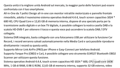 Car-Play Multimediale Ex-Demo (dimostrativo), condizioni pari al nuovo, lettore multimediale Erisin 3090-A, Schermo 7" touchscreen motorizzato , caratteristiche in foto. € 120,00 Franco 3356002406
