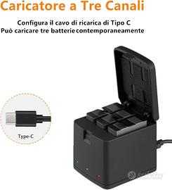 3 batterie da 1500 mAh + 1 caricabatterie a 3 canali + 1 cavo USB di tipo C + 3 scatola di protezione della batteria.