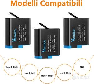 Pienamente compatibile con Hero 8, Hero 7 Black, Hero 6 Black, Hero 5 Black e AHDBT-801. Compatibile con tutti i firmware.