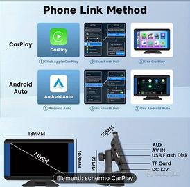 Vendo ottimo prodotto per chi non ha lo schermo carplay in auto. Si collega anche all’autoradio, compatibile con iphone e tutti gli android. Funziona da navigatore, comunicazione con telefono, comandi vocali, vivavoce e anche autoradio integrato. Si puo installare facilmente.