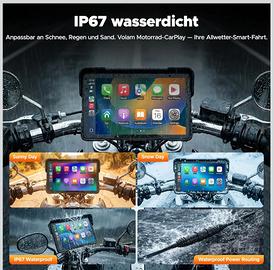 Volam Schermo Carplay per Moto con Senza Fili CarPlay & Android Auto, 7 Pollici Touchscreen Autoradio Portatile per Motocicletta con Navigazione, Doppio Bluetooth