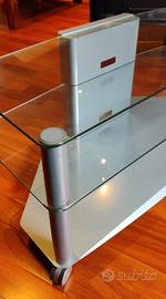 Carrellino in vetro e acciaio porta TV e hi-fi, lettori dvd, video registratore, console videogiochi ecc