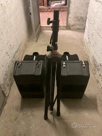 Riproduzione di una estesa gamma di frequenze. Mobile robusto e trasportabile, dotato di maniglia metallica, coperchio di protezione, con maniglia di trasoporto.