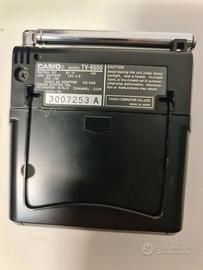Casio TV-6500, mini TV da 2,7 pollici (circa 6,5 cm di diagonale). Funzionante con 6 batterie stilo (non fornite) o alimentatore da 9v (non fornito). Scatola che mostra la sua età, e istruzioni.
