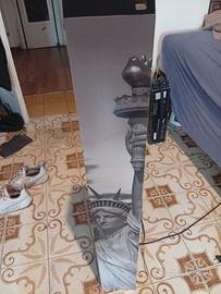 Cassa a colonna bluetooth Bigben, funzionante, stampa bianco e nero raffigurante la statua della libertà, Usata in buone condizioni, iho abbassato il prezzo al minimo (intrattabile) perché in alcuni punti la stampa si è leggermente scollata, specialmente dove tocca con altre superfici, cioè su un angolo e sul fondo, vedere le ultime due foto. misure altezza 98cmm, base 13cm x 9cm