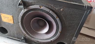 Cassa acustica di produzione artigianale ma di livello professionale. Realizzata con 2 diffusori CIARE PH250. L'ottima risposta da i 55Hz ai 16000Hz in frequenza fanno di questa cassa un eccellente diffusore full-range. La cassa è dotata di diversi attacchi, maniglie di trasporto e ruote. SOLO CONSEGNA A MANO. Caratteristiche PH250 Potenza max: 300W Potenza nominale: 150W Impedenza nominale: 8 Ohm Diametro: 250mm Diametro bobina mobile: 50mm Sensibilità 1W/1m: 96 dB Risposta in frequenza 55-16.000 Hz Tipo di carico consigliato: Bass Reflex Volume consigliato reflex: 35 dm3 Frequenza accordo raccomandata: 68 Hz Materiali PH250 Tipo cestello: Acciaio Tipo magnete: Ferrite Tipo sospensione: Tela trattata Tipo former: Alluminio Altezza traferro: 8 mm