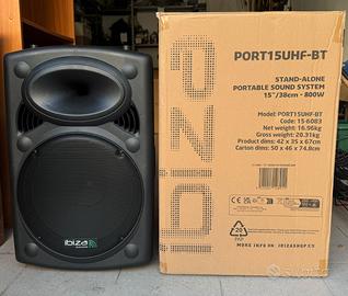Cassa audio portatile con ruote e maniglia, completa di batteria per autonomia fino a 4-6 ore. Modello IBIZA Sound modello da 15 pollici (PORT15UHF-BT)- 800W MAX con 2 microfoni (UHF). Completo di tutto: microfono portatile UHF, 1 microfono per cuffie UHF, 1 telecomando, 1 custodia protettiva/da trasporto e il cavo di collegamento. La tecnologia UHF offre ai microfoni un raggio d'azione di 50-60 m all'aperto (vista libera). Grazie alla batteria ricaricabile integrata, avete una autonomia da 6 a 8 ore (a seconda del volume). Condizioni: come NUOVO - perfettamente funzionante Acquistato ad inizio del 2025 per un progetto che non è mai "decollato" - autoparlante pari al nuovo il prezzo del nuovo €320 -> svendo a €220 (NON TRATTABILI) Non spedisco, solo scambio a mano zona Piacenza/Parma/Cremona/Reggio Emilia/Modena