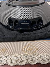 Cassa per IPhone/IPod con attacco 30 pin. Alimentazione corrente/12 V. Audio in/out. Telecomando e custodia originale.