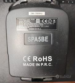 In condizioni pari al nuovo, utilizzabile con le batterie integrate o l'alimentazione continua, trova applicazione in lezioni scolastiche, conferenze, eventi musicali e guide turistiche negli spazi interni ed esterni contenenti fino a 200 persone.