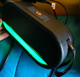 Altoparlante Bluetooth, luce LED con 7 effetti colore, microfono incorporato per chiamate hands-free, Bluetooth 5.3, impermeabile IP-X6 , con scatola, in garanzia (Amazon) vendo per inutilizzo. Dimensioni cm 20Lx9Hx6,5P. In regalo alimentatore USB, che non era compreso nella confezione.