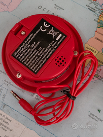 Collegamento con cavo audio. Alimentazione 3 batterie AAA.