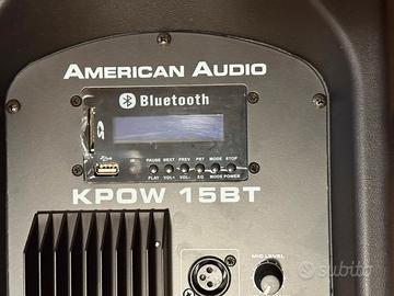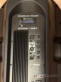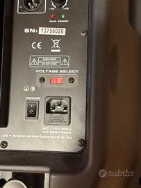 Cassa amplificata della American Audio. Doppio voltaggio selezionabile per funzionamento in italia/ europa (220v) ed in USA/UK (110v). Io l’ho sempre usato con mixerino ma funziona tranquillamente con una base suonata tramite bluetooth mentre è connessa una tastiera suonata sulla base e microfono regolabili tutti con volumi indipendenti. Ha anche presa usb per chiavette o sd per schede di memoria. Line IN e OUT sia jack standard che Canon. Potenza nominale 200W max continuous o 1000w di picco. Rapporto s/r della linea 100dB e del mic 80dB. Peso 17kg. Ideale per pianobar o come cassa spia (in questo caso un pochino sottoimpiegata). Sempre tenuta ed usata al chiuso. Mai esposta alle intemperie.