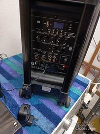 Oltre alla sua eccezionale qualità del suono nella sua categoria , questo sistema PA portatile ha importanti vantaggi quali l'autonomia grazie alla batteria ricaricabile in dotazione il suo doppio e 220V e 12V , la versatilità con il suo trolley a scomparsa e ruote.