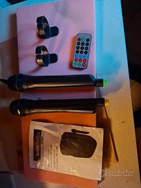 Vendo cassa amplificata portatile. Ha il telecomando per gestire la musica su eventuale pennetta, radio e tanto altro ancora. Ha 2microfoni funzionanti. La cassa funziona alla perfezione.