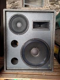 Vendo vecchia cassa artigianale da PA coni 10" e 15" + tweeter, ingressi XLR, perfettamente funzionante.