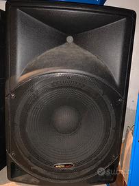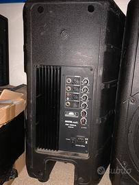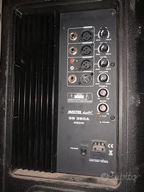 Coppia casse attive amplificate Master Audio SB380A da 450W RMS. Possibilita di regolazione volumi e frequenze con mixer a bordo e 2 ingressi microfonici con volumi separati. Woofer da 15 pollici. Filtro passa banda amplificatore malfunzionante manda le frequenze alte al woofer e non al tweeter ma per il resto funziona benissimo. Prezzo trattabile e riferito alla coppia