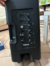 Cassa Karma amplificata 2 ingressi microfono 1 Line in 1line out Livelli regolabili singolarmente Livello master Equalizzatore 450w Regalo radiomicrofono karma in foto