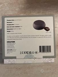 aGO è uno speaker musicale portatile con una autonomia di 12 ore (25 ore a pieno carico) resistente agli schizzi d'acqua. Ha un design semplice con bordi arrotondati, griglia in tessuto e laccio in pelle, riproduce la musica con un suono sorprendente ed è disponibile in otto diversi colori. Dotato di amplificatore digitale e di microfono incorporato per chiamate in vivavoce quando è connesso ad uno smartphone