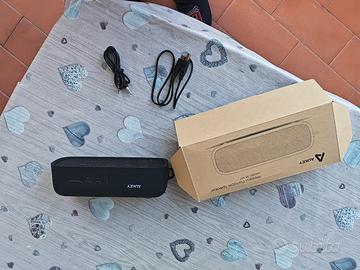 Vendo cassa Bluetooth marca Aukey, modello SK-M7 usata in buone condizioni. La cassa si presenta con segni di usura nella parte anteriore come è possibile vedere dalle foto ma funziona perfettamente. Insieme cavo carica, cavo jack audio e scatola originale.
