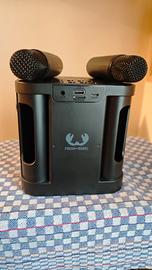 cassa BlueTooth dotata di due microfoni wireless ed effetti per la voce. Collegandola ad uno smartphone è possibile fare una serata karaoke con gli amici.