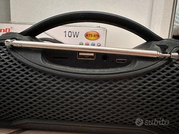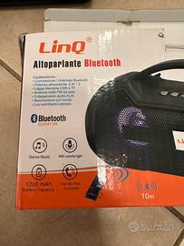 altoparlante portatile wireless della LinQ, ideale per ascoltare musica ovunque, in casa o all'aperto. Il dispositivo è versatile e combina potenza sonora con diverse funzioni extra come radio e torcia integrata.