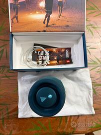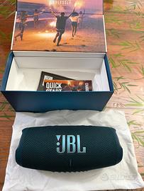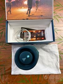 Cass bluetooth usata 1 volta completa di filo di carica e cartellini di certtificazione del prodotto, jbl 5 charge colore blu
