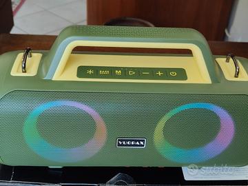 ✨ PRODOTTO NUOVO (Mai utilizzato, confezione originale). Speaker professionale ad alta potenza progettato per eventi all'aperto, feste in giardino e spiaggia. Offre un'esperienza audio immersiva con bassi fisici e un'autonomia record. Specifiche Tecniche e Audio: Potenza Sonora: 140W con configurazione a 4 driver (2 Subwoofer da 3" + 2 Tweeter da 30mm). Risposta in Frequenza: Da 30Hz a 20kHz per un suono bilanciato e dettagliato. Tecnologia Bass Boost: Tasto dedicato per enfatizzare le basse frequenze, supportato da doppi radiatori passivi per eliminare le distorsioni. Autonomia: Batteria ad alta capacità che garantisce fino a 24 ore di riproduzione continua. Resistenza e Funzionalità: Grado di Protezione IP65: Resistente a polvere, sabbia e getti d'acqua (pioggia, schizzi in piscina). Connettività Totale: Bluetooth, ingressi AUX, USB e slot per schede TF/SD. Funzione TWS: Possibilità di collegare senza fili due unità per un sistema stereo destra-sinistra potenziato. Atmosfera Party: Luci RGB dinamiche integrate che pulsano a ritmo di musica. Design e Trasporto: Struttura robusta con maniglia integrata per un trasporto facile e sicuro ovunque. 🚀 SPEDIZIONE RAPIDA: Spedisco nel minor tempo possibile per garantirti una consegna veloce! 🤝 RITIRO A MANO: Disponibile a mano in zona Alfonsine (RA) sempre possibile. ✅ I prodotti sono nuovi e esattamente nelle condizioni descritte. 📸 ATTENZIONE: Si prega di visionare attentamente tutte le foto e leggere bene la descrizione prima di procedere. ⛔ RESTITUZIONE: Trattandosi di vendita tra privati, la restituzione non è accettata. 🚫 ASTENERSI PERDITEMPO: Cerco e offro massima serietà. Grazie! ✨