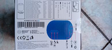 Cassa bluetooth portatile ricaricabile colore blu,permette di ascoltare musica associando il cellulare o tramite usb. Può essere utilizzato anche come kit vivavoce. Nuova mai stata utilizzata ancora imballata.