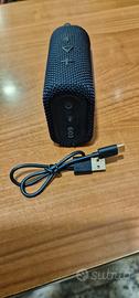 Cassa Bluetooth portatile con un design compatto e resistente. - Logo JBL in rilievo. - Cordino per il trasporto. - Cavo di ricarica incluso.