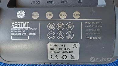 Cassa Bluetooth portatile 5W+5W con batteria e tracolla regolabile