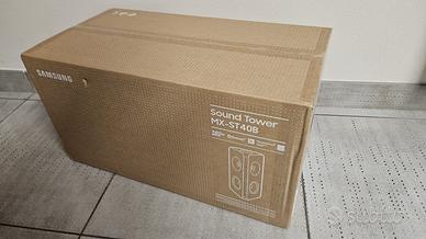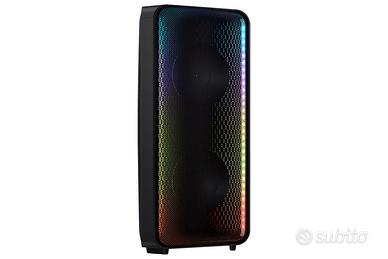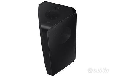Potenza elevata da 160 watt Con una potenza elevata da 160 watt, Sound Tower è l'amplificatore delle feste, capace di intensificare tutte le basse frequenze di una canzone. Aggiungi il Bass Booster per un'esperienza sonora persino più potente. Batteria integrata Con una durata della batteria integrata di 12 ore potrai goderti la festa ovunque tu vada. Party Lights+ Samsung Sound Tower offre tante e divertenti modalità di illuminazione – Party, Ambient, Dance, Thunder Bolt, Star – e grazie a unapp dedicata puoi facilmente regolare gli effetti direttamente dal tuo dispositivo mobile. Imposta leffetto luminoso più adatto al ritmo e scatenati! Multi-connessione Bluetooth® Con la multi-connessione Bluetooth®, tu e i tuoi amici potete connettervi e collegare simultaneamente due dispositivi mobili per condividere brani musicali. App Sound Tower Movimenta latmosfera della festa con unapp perfetta per fare il DJ che facilita il controllo dei vari effetti sonori e luminosi e persino delle impostazioni EQ, direttamente dal cellulare. 1 input USB Con una porta USB integrata, puoi collegare un dispositivo esterno e premendo Play potrai ascoltare i tuoi file musicali con gli amici. Connessione Bluetooth® al TV Collega Sound Tower al TV tramite Bluetooth e goditi la tua musica preferita senza cavi. ---- Audio Potenza in uscita (RMS): 160 Sistema audio: 2 Dimensioni e peso Peso dell'imballo: 9500 Peso: 8000 Larghezza: 281 Profondità: 256 Altezza: 562 Altezza imballo: 336 Larghezza imballo: 630 Profondità imballo: 330 Gestione energetica Consumi: 40 Consumi (modalità stand-by): 0.5 Connettività Bluetooth: Sì Tecnologia di connessione: Con cavo e senza cavo Connettore 3.5 mm: Sì Collegamento del dispositivo USB: Sì Contenuto dell'imballo Telecomando portatile: Sì