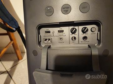 vendo cassa bluetooth per feste anche da esterno 20 ore di batteria funzionante anche senza corrente, usata veramente poco. sono presenti luci LED, possibilità di collegarsi ad altre casse e controllarla tramite app.