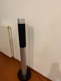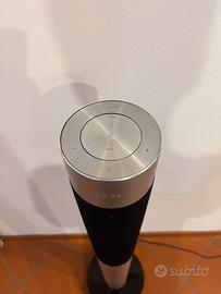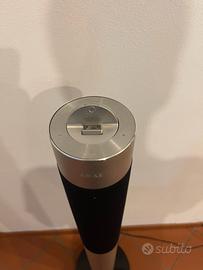 Vendo cassa portatile Akai ASB220i, dal caratteristico design cilindrico grigio e nero.