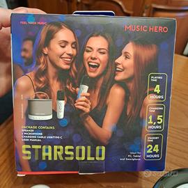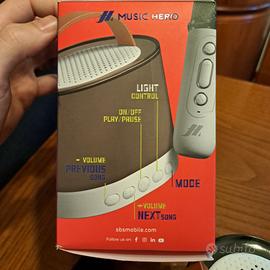 Vendo per inutilizzo. è nuova e funzionante come in foto. Dotato di cavetto per ricaricare la cassa ed il microfono. Nel retro si può inserire la schedina sd o un attacco aux