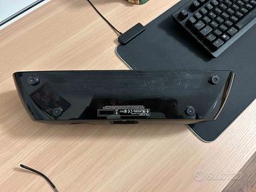 Cassa Creative D200 con connettività Bluetooth. Design compatto orizzontale con diffusori integrati, adatto per PC, TV o smartphone. Rovinata sul lato inferiore ma non visibile durante l’uso normale. Venduta con alimentatore originale.