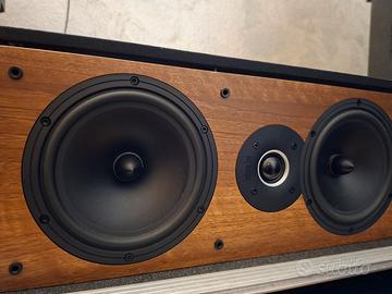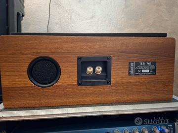 Vendo cassa centrale Indiana Line 761 come nouva Indiana Line Tesi 761 è un canale centrale con un eccezionale estetica. Utilizza un tweeter a cupola da 26 mm in modo asimmetrico tra una coppia di woofer con un diametro di 160 mm, ed ha il bass reflex posteriore. È stato ottimizzato per una riproduzione vocale realistica e dettagliata. Utilizzando i diffusori della serie Tesi con il canale centrale Tesi 761, è possibile creare un set completo e allo stesso tempo coerente dal punto di vista sonoro di diffusori home theater, garantendo un’elevata dinamica del segnale riprodotto. Specifiche tecniche Allineamento elettrico / tipo 2 vie / centrale Caricamento acustico / accordo bass-reflex / posteriore Drivers midwoofer: 1 x 160 mm, mica-polypropylene cone, tweeter: 26 mm, silk dome Risposta in Frequenza 45 – 22000 Hz Sensibilità (2,8 V/1 m) 93 dB Crossover 2300 Hz Bi-wiring / bi-amping no Loading impedance amplificatore 4 – 8 ohm Amplificatore consigliato 30 – 140 W Dimensioni (H x I x P) 180 x 460 x 240