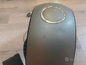 Cassa acustica amplificata molto potente dal suono pulito, sono presenti 2 altoparlanti laterali ed uno centrale è anche radio e sveglia.
