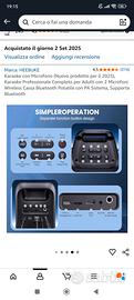 come da titolo vendo cassa bluetooth per karaoke, con 2 microfoni in dotazione. Basta collegare un dispositivo (telefono,Tablet ecc) e far partite la musica o qualsiasi altra cosa si voglia.