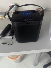Cassa karaoke con due microfoni al suo interno collegamento tramite Bluetooth,aux,usb