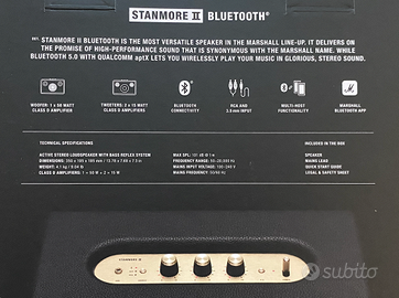 Cassa Marshall Stanmore II 80 watt bluetooth + RCA