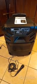 Vendo cassa multifunzione amplificata altezza 70 larghezza 45 con lettore usb per chiavetta collegamento bluetooth per collegare cellulare, microfono ,ingresso aux per collegare un CD o giradischi amplificato 130 watt di potenza telecomando istruzioni per l'uso prezzo non trattabile consegno a mano.