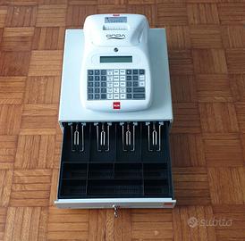 Funzionante, completa di cassetto porta banconote/monete con serratura e chiave, collegamento a internet e invio telematico dati all'Agenzia delle Entrate, porta per cassetto rendi resto, giornale di cassa elettronico su card SD (non in dotazione), dati tecnici vedi foto 6