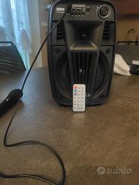 Diffusore amplificato portatile da 100W (potenza PMPO), batteria ricaricabile via USB, Bluetooth 5.0, lettore MP3 integrato (USB e MicroSD), e ingressi per microfono e line. Dispone inoltre di una funzione TWS (True Wireless Stereo), un ingresso AUX, un telecomando e un microfono a filo in dotazione, e un alloggiamento per treppiede.