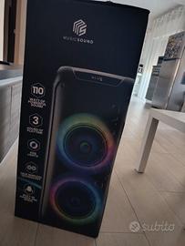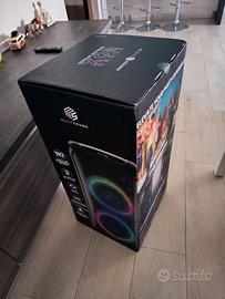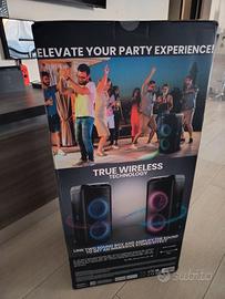110 watt di potenza: garantisce un suono potente e cristallino per goderti al massimo la tua musica preferita Tecnologia True Wireless: collega due speaker SOUND BOx per un suono stereo immersivo e amplificato Portatile e pratico: dotato di maniglia e ruote per trasportarlo facilmente e ascoltare musica ovunque, anche all'aperto Fino a 3 ore di autonomia: offre una riproduzione musicale continua per animare le tue feste o i tuoi momenti di relax Spettacolo di luci RGB: luci dinamiche sincronizzate al ritmo della musica per creare un'atmosfera unica e coinvolgente