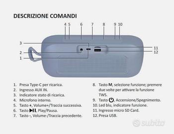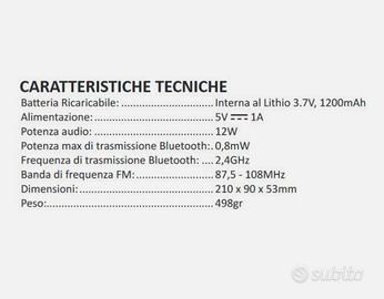 Cassa speaker bluetooth PORTATILE altoparlante wireless radio fm usb mp3 sd aux.