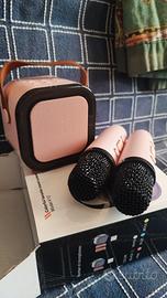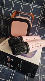 Cassa karaoke Bluetooth Portatile con 2 Microfoni Wireless, LED RGB Multicolore, Tecnologia 5.3, Karaoke, Ricarica Type-C, Supporto TF/Micro SD Card Colore rosa Nuovo
