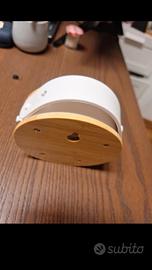 Cassa che emette rumori naturali (uccelli, acqua), ricaricabile con pile, volume e gancio regolabile