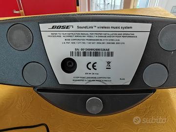 Cassa Wireless Bose Sound link usata ma in perfette condizioni a parte il telecomando che ha lo scotch nella parte posteriore dove si trova la batteria per rottura dello sportellino.