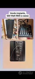Vendo a malincuore Impianto con mix, fili e Casse da 600Watt RMS. prezzo 400€ se interessati il prezzo è trattabile.